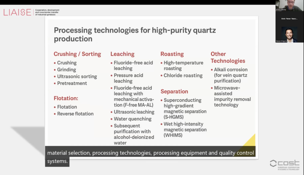 Andrii Cherep introduced an industrial symbiosis model for producing high-purity quartz (HPQ) from mining residues in Ukraine.