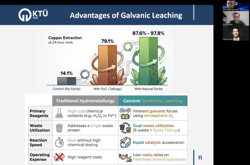 This galvanic leaching approach significantly improves copper recovery rates—from around 14% to nearly 79%—while reducing the need for costly chemical reagents.